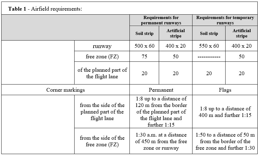 If it is impossible to prepare permanent and temporary runways of the dimensions specified above (complex terrain, etc.) in cases where there are no ravines and other dangerous places at the end and side borders of the runways, it is allowed to reduce the total length and width of the runways.