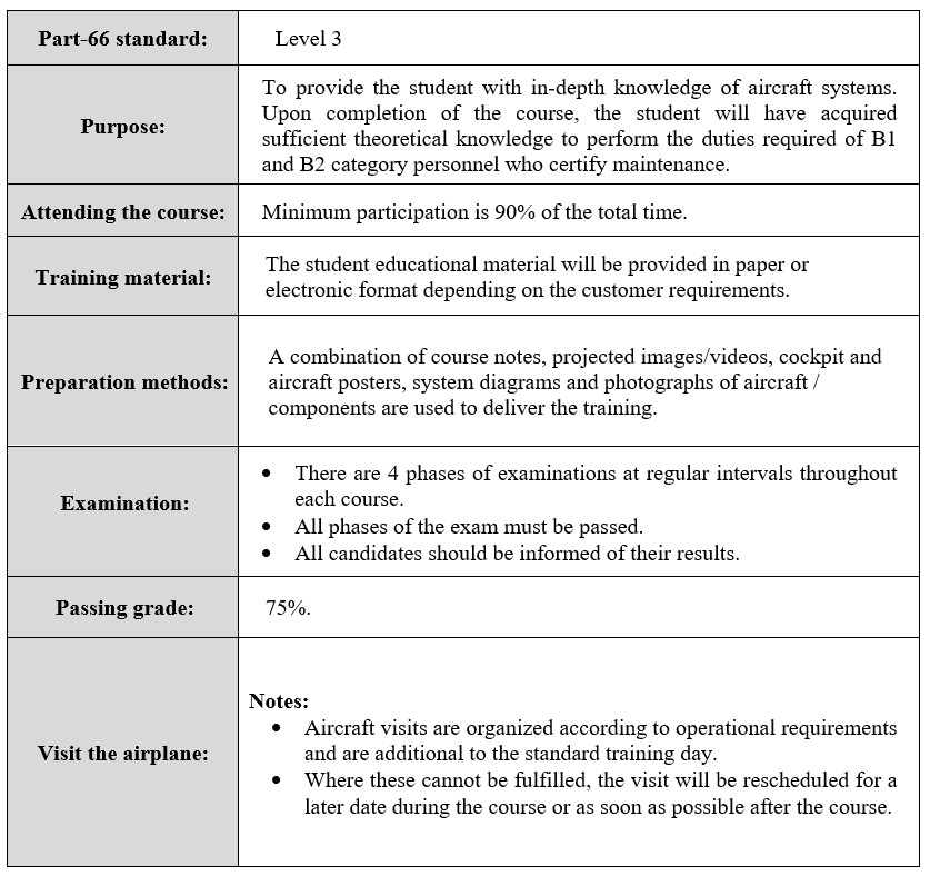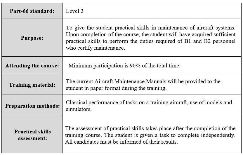 - Upon completion of the training, training certificates for the type of aircraft are issued, which are further required to obtain an Aircraft Maintenance Engineer/Technician Certificate in accordance with ICAO standards and Part-66, 147 requirements.